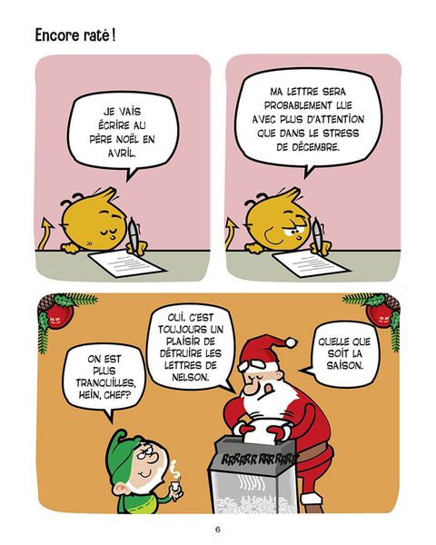 Nelson, c'est ce petit diablotin orange à l'apparence tout à fait angélique qui pourrit la vie de Julie, une jeune et jolie célibataire, et de Floyd, un labrador engourdi, pour le plus grand bonheur de centaines de milliers de lecteurs. La raison? Après le vol d'un rouleau de papier toilette au bureau, Julie se voit condamnée à accueillir, sans possibilité de retour à l'expéditeur, un petit diable relativement inoffensif... mais hyper doué pour les catastrophes quotidiennes! Dans ce tome 3, Nelson fait preuve d'énormément de naïveté en espérant recevoir des tas de cadeaux malgré ses nombreuses bêtises. Malheureusement pour lui, le père Noël est bien informé et ne veut rien lâcher. Entre les deux, la guerre est déclarée!