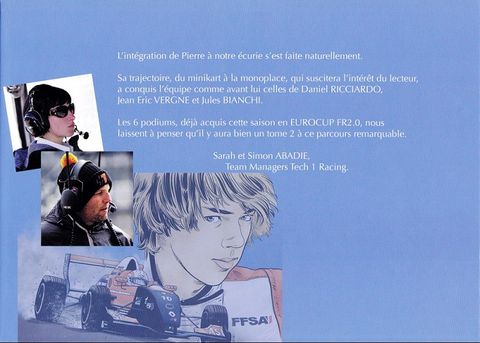 Première Bande Dessinée retraçant la carrière de Pierre depuis sa naissance, en passant par le Karting puis la Monoplace jusqu'en 2013.