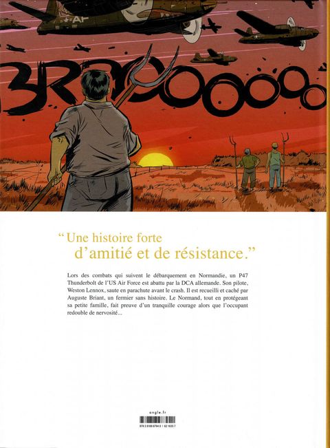 Retrouvez les 2 tomes de Tranquille courage en intégrale. C'était en 1944. Lors des combats qui suivent le débarquement en Normandie, un P47 Thunderbolt de l'US Air Force est abattu par la DCA allemande. Son pilote, Weston Lennox, saute en parachute avant le crash. Il est recueilli et caché par Auguste Briant, un fermier sans histoire. Le Normand, tout en protégeant sa petite famille, fait preuve d'un tranquille courage alors que l'occupant redouble de nervosité...