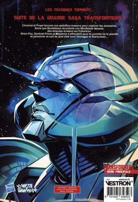 La chasse est ouverte ! Chromia et Prowl lancent une opération massive pour capturer les assassins. Alors que Bumblebee réconforte une Windblade blessée, des émeutes éclatent sur Cybertron. Orion Pax, Sentinel Prime et Mégatron s'affrontent pour le contrôle de Cybertron et personne ne sait de quel côté sont Termagax et Starscream...