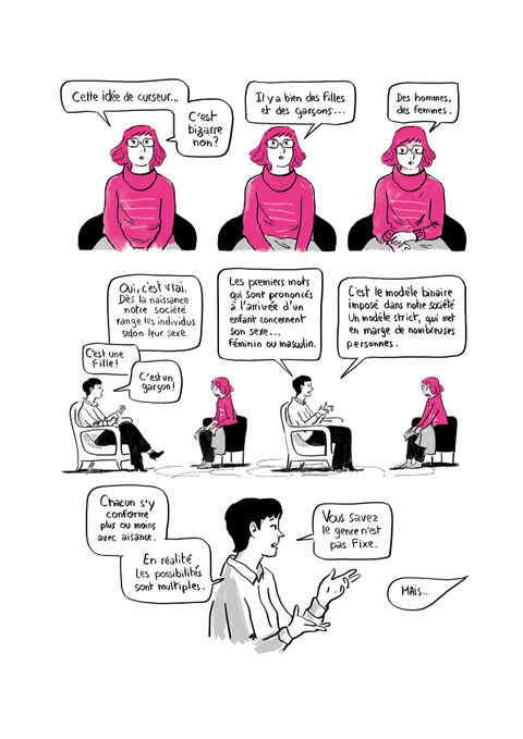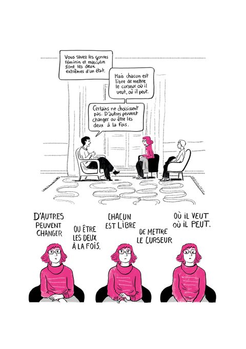 " Vous savez, les genres féminin et masculin sont les deux extrêmes d'un état. Chacun est libre de mettre le curseur où il veut, où il peut". Les mots de la psychologue du planning familial bousculent Anne. Elle n'a rien vu venir. Sa fille est un garçon... Anne bataille, se déconstruit, apprend, s'ajuste à son enfant, pour se fabriquer un autre regard, un nouveau paradigme.