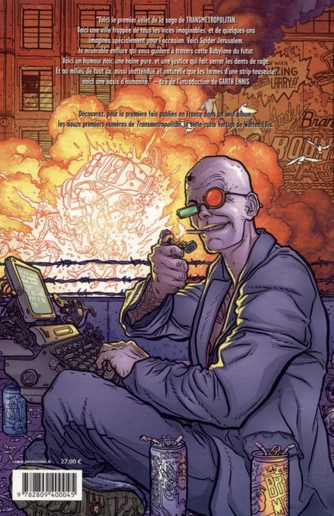 Voici le premier volet de la saga de Transmetropolitan. Voici une ville frappée de tous les vices imaginables, et de quelques uns imaginés spécialement pour l'occasion. voici Spider Jerusalem, la misérable enflure qui vous guidera à travers cette Babylone du futur. Voici un humour noir, une haine pure, et une justice qui fait serrer les dents de rage. Et au milieu de tout ça, aussi inattendue et naturelle que les larmes d'une strip-teaseuse.