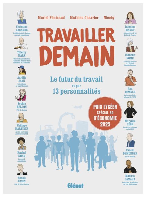 À quoi ressemblera le travail de demain ? 13 personnalités prennent la parole.L’intelligence artificielle va-t-elle vraiment tout révolutionner ? Pourquoi l’égalité femmes / hommes est-elle cruciale dans les entreprises ? Comment concilier productivité, transition écologique et responsabilité sociale ? Quelle place pour les syndicats dans ce grand bouleversement ? Comment répondre aux nouvelles attentes des jeunes et des salariés ? Et comment mieux les former, alors que la population vieillit, que la main d’œuvre se raréfie et que les compétences évoluent rapidement ? Voici quelques-unes des nombreuses questions débattues dans ce livre, à travers le regard de 13 actrices et acteurs du monde du travail qui partagent leurs visions et leurs engagements. Une chose est sûre : réfléchir au travail de demain, c’est réfléchir dès aujourd’hui aux évolutions de notre société pour ouvrir le débat. Pour traiter tous ces enjeux, le lecteur va suivre les aventures de Soraya, jeune lycéenne qui se rend au pot de départ à la retraite de sa grand-mère Cathy, DRH dans une entreprise de parapluies. Soraya a une idée en tête : se servir de ce moment pour boucler son exposé sur le futur du travail. Mais elle n’imaginait pas pouvoir rencontrer toutes ces personnalités, et qu’elles acceptent de jouer le jeu en devenant d’authentiques personnages de bande dessinée. Véritable documentaire-fiction aussi sérieux qu’amusant, Travailler Demain est porté par Muriel Pénicaud, ancienne ministre du Travail, et le journaliste Mathieu Charrier. Ce roman graphique ambitieux dresse le portrait d’un monde en devenir et offre des pistes de réflexion pour tâcher de répondre ensemble à la question que tout le monde se pose : à quoi va ressembler le travail de demain ? Mis en scène par Nicoby avec réalisme, humour et précision, cet ouvrage est à destination de toutes celles et ceux que la question du travail intéresse, qu’ils soient élèves ou étudiants, actifs ou retraités.Ont participé à cet album : Benoit BAZIN : PDG de Saint-Gobain ; Sophie BELLON : PDG de Sodexo ; Moussa CAMARA : fondateur & Président des Déterminés ; Pascal DEMURGER : DG de la MAIF ; Aurélie JEAN : chercheuse en algorithmique ; Rachel KHAN : auteure & comédienne ; Christine LAGARDE : Présidente de la Banque centrale européenne ; Marylise LEON : Secrétaire générale de la CFDT ; Jasmine MANET : cofondatrice et DG de Youth Forever ; Philippe MARTINEZ : ancien Secrétaire général de la CGT ; Thierry MARX : Chef étoilé. Président de l’Union des métiers et des industries de l’hôtellerie et de la restauration ; Ron OSWALD : ancien Secrétaire général UITA ; Isabelle ROME : ancienne ministre à l’Egalité Femmes-Hommes.