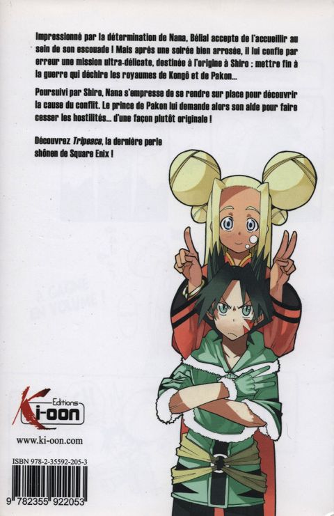 Impressionné par la détermination de Nana, Bélial accepte de l'accueillir au sein de son escouade ! Mais après une soirée bien arrosée, il lui confie par erreur une mission ultra-délicate, destinée à l'origine à Shiro : mettre fin à la guerre qui déchire les royaumes de Kongô et Pakon... Poursuivi par Shiro, Nana s'empresse de se rendre sur place pour découvrir la cause du conflit. Le prince de Pakon lui demande alors son aide pour faire cesser les hostilités... d'une façon plutôt original ! Découvrez Tripeace, la dernière perle shônen de Square Enix !