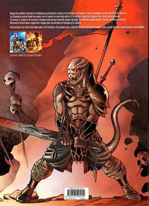 « Depuis des milliers d'années, les Humains gardaient les Lémurs en esclavage. Leur magie et leur technologie avaient fait d'eux les maîtres. Les Humains avaient fondé un empire sur le sang et la sueur des autres. Le dernier empereur humain était, disait-on, pire encore. C'est dans ce contexte de tension larvée qu'une nouvelle menace apparaît : les Reptiles, peuple ennemi éternel, ont traversé l'océan dévorant le désert. Et ils s'approchent un peu plus de Kanthara, la capitale. Cette histoire est celle où tout a changé. C'est l'histoire d'une libération. C'est l'histoire d'un Lémur qui a retourné le destin, maîtrisé le soleil, et qui, un jour, est devenu empereur des trois peuples. »