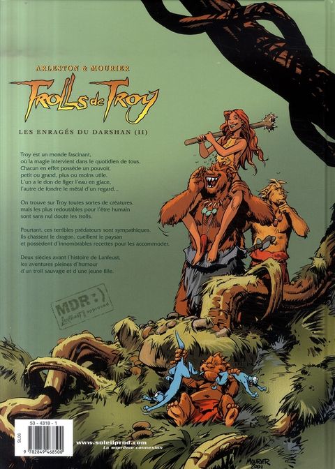 Teträm, Waha, Tyneth et Gnondpom sont au Darshan, en bien fâcheuse posture ! Il faut sauver les trollillons prisonniers de Dame Meshanta, mais pour cela il faut avant tout se sortir d'affaire... Bon, ce sont tous des trolls, donc on a quand même un peu confiance ! Second volume d'une aventure en deux tomes, les Enragés du Darshan continue dans le mélange d'aventure et d'humour loufoque qui a fait le succès de la série. C'est cette fois, à travers tout un périple urbain, le cinéma de Hong-Kong qui se retrouve au centre des parodies.