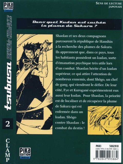 shaolan et ses deux compagnons parcourent la république de hanshin à la recherche des plumes de sakura. ils apprennent que, dans ce pays, tous les habitants possèdent un kudan, sorte d'émanation psychique très utile lors d'un combat. shaolan hérite d'un kudan supérieur, ce qui attire l'attention de nombreux ennemis, dont shôgo, un chef de gang qui viendront le défier. de leur côté, fye et kurogané expérimentent eux aussi leur kudan. pour shaolan, la priorité est de localiser et de récupérer la plume de sakura qui est enfermé dans un kudan. shôgo contre shaolan, le combat du destin !