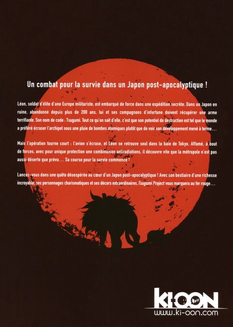 Léon, soldat d’élite d’une Europe militariste, est embarqué de force dans une expédition secrète. Dans un Japon en ruine, abandonné depuis plus de 200 ans, lui et ses compagnons d’infortune doivent récupérer une arme terrifiante. Son nom de code : Tsugumi. Tout ce qu’on sait d’elle, c’est que son potentiel de destruction est tel que le monde a préféré écraser l’archipel sous une pluie de bombes atomiques plutôt que de voir son développement mené à terme… Mais l’opération tourne court : l’avion s’écrase, et Léon se retrouve seul dans la baie de Tokyo. Affamé, à bout de forces, avec pour unique protection une combinaison antiradiations, il découvre vite que la métropole n’est pas aussi déserte que prévu… Sa course pour la survie commence !