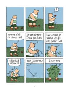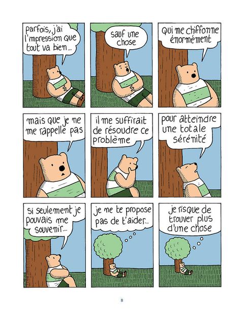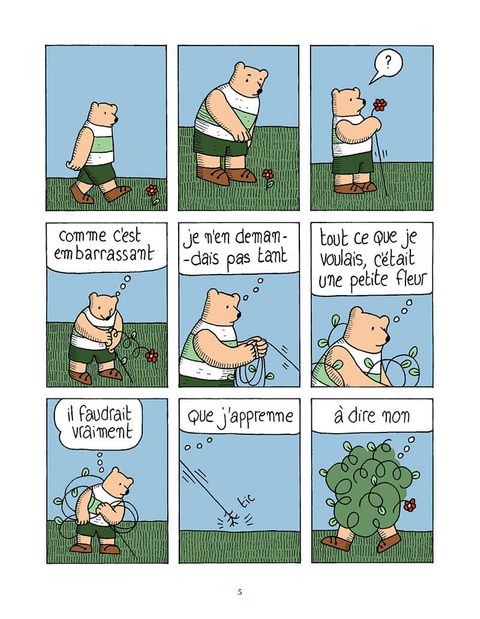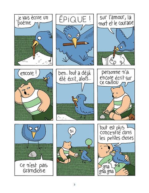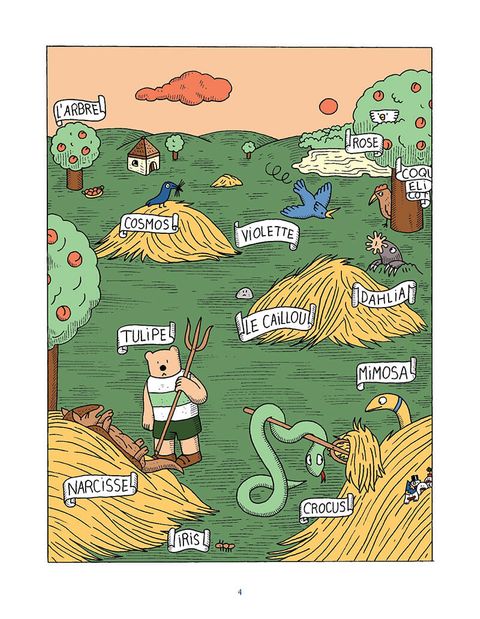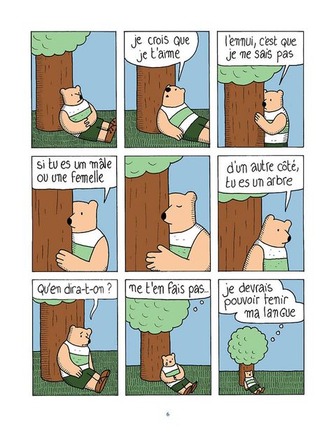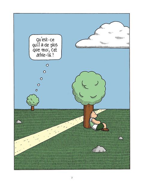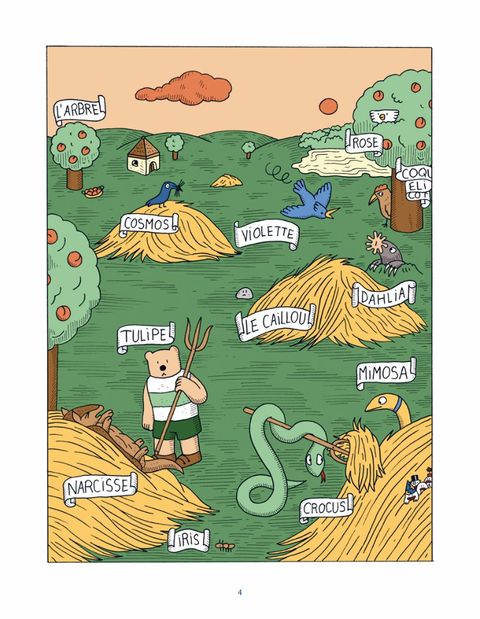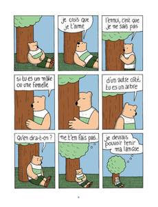 « Le loup et l'agneau partageront la même couche, mais l'agneau ne dormira pas beaucoup. » Woody Allen. L'Ours Tulipe, contre son arbre adossé, regarde s'agiter vainement ses compagnons : Crocus le Serpent combat son anxiété par une activité de tous les instants, l'oiseau Violette cherche un moyen d'entrer en contact avec le Soleil, son amoureux, et le Caillou désespère de n'être qu'un caillou. La vie ? Un sacré sac de petits tracas et de grandes contrariétés. Mais comme le dit si bien Crocus, avec des pauses crêpes, ça passe. Dans cette fable pleine de tendresse, les grandes questions existentielles prennent corps, poils, plumes ou écailles. Crocus l'hyperactif, Mimosa la taupe timide, Tulipe l'ours stoïcien, vivent des amours impossibles, aspirent à une existence enfin comblée. Dans la lignée des Peanuts ou de Mafalda, Sophie Guerrive invente des personnages attachants, symbolisant chacun une fragilité humaine. Tulipe est le reflet de nos névroses, de nos ridicules et de nos grandeurs, dépeints par des paroles sublimes et absurdes à la Nasr Eddine Hodja, où les figures du Savant, du Poète et de l'Idiot se confondent.
