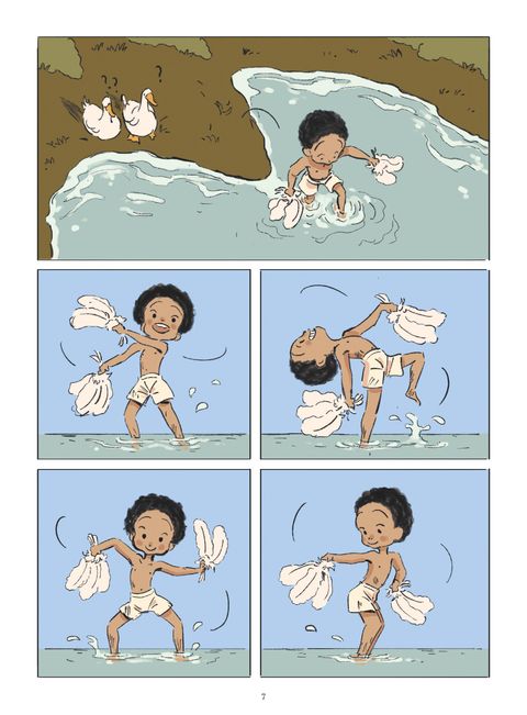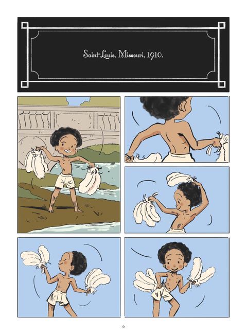 Le destin d’une fillette qui court pieds nus derrière ses rêves. Née dans le Missouri en 1906, celle que l’on surnommait Tumpie grandit dans la misère. Élevée par une mère chanteuse dans une Amérique où la violence à l’encontre des Afro-Américains est omniprésente, rien ne prédestinait Freda Josephine McDonald, de son vrai nom, à conquérir le music-hall parisien dans les années 1920. Enfant, elle quitte l’école et travaille comme domestique dans des familles aisées pour subvenir aux besoins de la fratrie. Malgré les mauvais traitements, la fillette affiche un tempérament solaire et un large sourire qui semble venir à bout des épreuves de la vie. Avec une énergie débordante, elle improvise des spectacles et n’a qu’un seul rêve : devenir danseuse. Mariée une première fois à 13 ans et une seconde fois à 15 ans, elle se fait embaucher par la troupe des Dixie Steppers avant de les rejoindre en tournée à ses 16 ans. Mais en 1922, l’envie de conquérir Broadway la pousse à prendre une autre route, direction New York. La futur Joséphine Baker voit grand et n’a pas de mal à gravir les échelons ; elle irradie sur scène. Sa vie bascule quand Caroline Dudley repère son potentiel alors que Tumpie se produit au Plantation Club. C’est elle qui poussera la jeune femme âgée de 19 ans à prendre un nom de scène et qui lui offrira l’opportunité d’une vie : danser à Paris ! Contrairement aux États-Unis où la ségrégation raciale freine ses pas, les cabarets parisiens pourraient donner un rôle à Tumpie. Nous sommes en 1925 et une comédie musicale, avec musique afro, s’apprête à enflammer le théâtre des Champs-Élysées. Tumpie a fait place à Joséphine Baker et La Revue Nègre fera de cette dernière, une vedette ! Son charisme magnétique et son exotisme fascinent. Pour la fillette du Missouri qui marchait hier encore pieds nus, le chemin du succès la mènera à sillonner le monde.Joséphine Baker éveille en nous l’image d’une jeune femme triomphante en pagne de bananes. Mais que savons-nous de l’enfance de cette artiste métisse du début du XXe siècle ? Après Audrey Hepburn, Jean-Luc Cornette et Agnese Innocente nous dévoilent l’histoire d’une fillette qui court pieds nus derrière ses rêves grâce à un récit authentique au dessin expressif et délicat. Ils nous invitent à découvrir le décor d’une enfance américaine et d’une jeunesse mouvementée. Marcher dans les pas de cette femme au grand cœur, c’est traverser les épreuves de la vie en dansant.