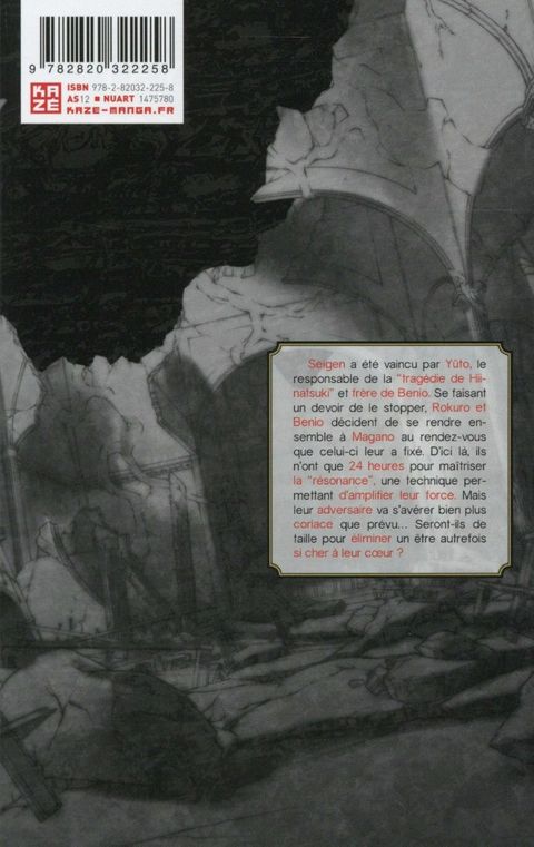 Seigen a été vaincu par Yûto, le responsable de la ""tragédie de Hiinatsuki"" et frère de Benio. Se faisant un devoir de le stopper, Rokuro et Benio décident de se rendre ensemble à Magano au rendez-vous fixé par ce dernier. D'ici là, ils n'ont que 24 heures pour maîtriser la ""résonance"", une technique permettant d'amplifier leur force. Mais leur adversaire va s'avéré bien plus coriace que prévu. Seront-ils de taille pour éliminer un être autrefois si cher à leur coeur ?