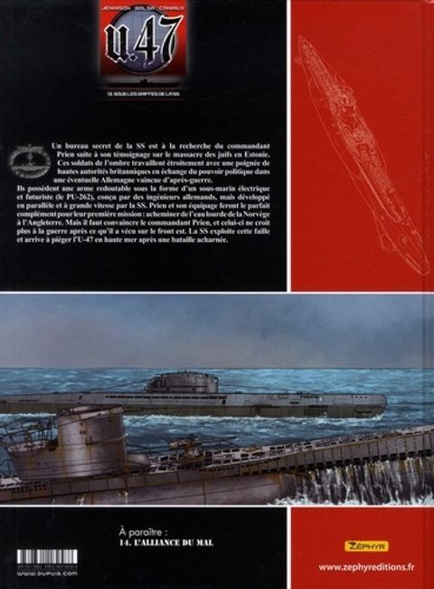 Après avoir une livré une bataille sans merci, L'U-47 du commandant Prien est piégé par des soldats SS qui veulent forcer l'équipage à transporter de l'eau lourde depuis la Norvège jusqu'en Angleterre. Pour faire effectuer cette mission à haut-risque, les allemands disposent d'un sous-marin électrique et futuriste, le PU-262 ! Avec un dossier de 80 pages en fin d'album, réalisé par Luc Brauer, sur le rôle des U-Boote à Toulon face aux débarquements alliés en Italie.