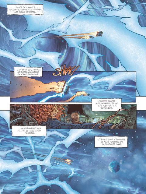 Qu'y a-t-il de plus dangereux qu'une mère à qui on vole son enfant ? Mony, accompagnée de Tuco et Shaël, voyagent en direction de L'oeil du Cyclope, au-delà de l'univers connu, là d'où personne n'est jamais revenu. Après des mois d'un périlleux voyage au travers de terribles tempêtes, ils s'échouent sur une planète aussi glaciale qu'hostile. A peine atterrissent-ils en catastrophe qu'ils sont attaqués par une horde de pillards. A bord du Dolorès, seul Tuco est en état d'engager le combat, Mony étant en train... d'accoucher ! Après un bref combat, Tuco et Mony sont enchainés et le nouveau-né, encore tout chaud du ventre de sa mère, kidnappé. Parvenus à s'échapper, Mony et Tuco se lancent à la poursuite des voleurs de l'enfant, affrontant le froid et les dangers de cette planète inconnue. Après avoir posé le personnage de Mony, nonne devenue flingueuse ainsi que patronne de l'UCC Dolorès, Didier tarquin rebat les cartes de son univers SF aux forts relents de western et de fantastique. Il s'amuse avec une course poursuite enneigée dans laquelle il se renouvelle graphiquement tout en continuant de creuser la personnalité de son héroïne.