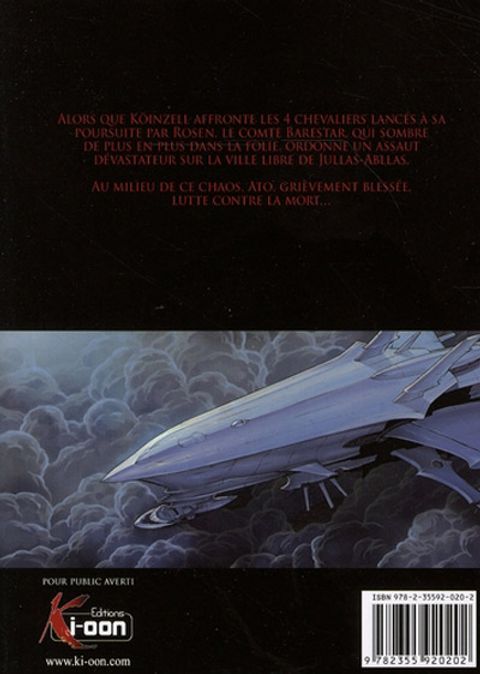 Alors que koïnzell affronte les 4 chevaliers lancés à sa poursuite par rosen, le comte barestar, qui sombre de plus en plus dans la folie, ordonne un assaut dévastateur sur la ville libre de jullas-abllas. Au milieu de ce chaos, ato, grièvement blessé, lutte contre la mort...