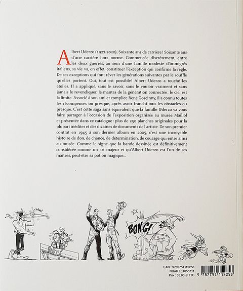 Ce catalogue accompagne l'exposition "UDERZO. Comme une potion magique" , présentée au musée Maillol de Paris du 17 avril au 30 septembre 2021, sous la direction de la famille Uderzo. COMME UNE POTION MAGIQUE par Ada & Sylvie Uderzo : "Nous avions cru que, pour une fois, le destin lui avait joué un mauvais tour. Alors que toute la Gaule était entrée en confinement depuis une semaine à peine, au petit matin du 24 mars 2020, Albert Uderzo s'est endormi pour toujours, nous laissant seules, incapables de saisir la signification de son départ. Car personne n'est jamais vraiment préparé à cette mise en abîme, jamais. Avec le recul, nous avons compris que le destin lui avait offert, en réalité, ce qu'il désirait : s'en aller le plus discrètement possible, comme il avait tenté de vivre toute sa vie. Lui ne percevait pas la réalité de son parcours, l'arc incroyable qui lui avait permis de partir d'un point zéro pour atteindre les étoiles. Nous retrouvant avec ses dessins, avec ses personnages et avec sa célèbre signature, nous nous sommes interrogées sur ce qu'il aurait aimé que nous fassions. Rendre un hommage à sa carrière sans équivalent nous a très vite paru être une obligation, un besoin, une nécessité. Comme une potion magique. Une exposition devait en être le point d'orgue. La bande dessinée, longtemps considérée comme un art mineur, mérite aujourd'hui d'entrer dans les musées. Le musée Maillol, au coeur de Paris, était le parfait écrin pour accueillir ses planches, ses dessins, ses couvertures, qui, pour la plupart, n'étaient jamais sortis de son bureau. Nous souhaitions que, comme nous, les lecteurs des albums découvrent l'envers du décor, les coulisses du travail acharné auquel il s'était astreint toute sa vie. En soixante ans de carrière, de 1945 à 2005, il a tant crayonné, encré, souvent colorisé, que de Zartan à Astérix, en passant par Clopinard, Arys Buck, Jehan Pistolet, Luc Junior, Oumpah-Pah, Tanguy et Laverdure et tant d'autres jusqu'à Astérix, Obélix, Idéfix, nous voulions que le public puisse saisir la vraie dimension de son travail. Offrir à ses lecteurs de six à quatre-vingt-dix ans la possibilité de partager un moment privilégié avec lui. Car il nous répétait qu'il devait tout à son public. De la Vénétie à Lutèce, " Uderzo. Comme une potion magique " vous fera voyager au coeur de ses bulles... "