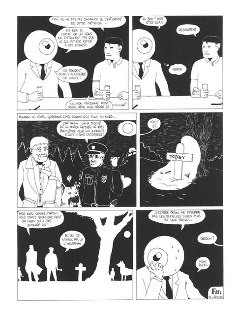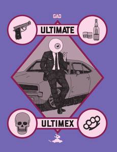 Qui ne connaît pas Ultimex ? Cet American Psycho à la française a la particularité d'avoir un énorme oeil à la place de la tête, et d'être toujours tiré à quatre épingle. Musclé, dans un costume mettant en valeur sa silhouette, qu'il lui arrive d'arracher violemment quand il doit rosser un importun ou violer une veuve devant un orphelin. Car Ultimex ne fait pas dans la dentelle. Ses ex mangent les pissenlits par la racine, enterré dans un trou sous une croix avec un nom de chien (Sparky le plus souvent) ou coulé dans une colonne de béton. Ses adversaires portent des dentiers et ont du avoir recours à la chirurgie réparatrice, à l'exception de son collègue détesté, Aaron, qu'il finira bien par coincer un jour. Ultimex n'est pas seul, car il a un ami. Enfin... Un faire-valoir. Steve, le faire-falloir prodige, qui est lui aussi un beau-gosse bien habillé, mais un peu moins bien, un peu moins drôle, un peu moins tout. Il est uniquement là pour mettre en valeur Ultimex. Et il a des petits penchants peu avouables, du côté de la pédophilie, peut être, et une homosexualité refoulée qui lui fait tenir des propos insoutenablement homophobe tandis qu'il regarde les corps huileux de catcheurs myopathes. Trois albums d'Ultimex sont parus et ont fait de lui l'une des icônes de la blogosphère bd. Le jeu Coups d'un soir a été réalisé dans le cadre d'une exposition à sa gloire en Suisse. Voilà la version ultime de ses aventures reliées. Ultimex est une icône rock, trash et provoc qui lui a valu de nombreux fan, y compris au sein des auteurs de bd actuels. On trouve donc quelques couverture des "comix utilmex" signé par des grands noms de la bd actuelle : Monsieur le chien, Goupil Acnéique, Florence Dupré Latour, Guillaume Bouzard, Ibn al Rabin, Bgnet, que les meilleurs. Tous seront présent dans ce recueil relié en cuir cochon doré à l'or fin ; on murmure qu'il serait en fait relié en peau humaine, mais c'est sans doute une légende urbaine... Un recueil d'humour noir, avec une adjonction de couleur pour rire jaune.