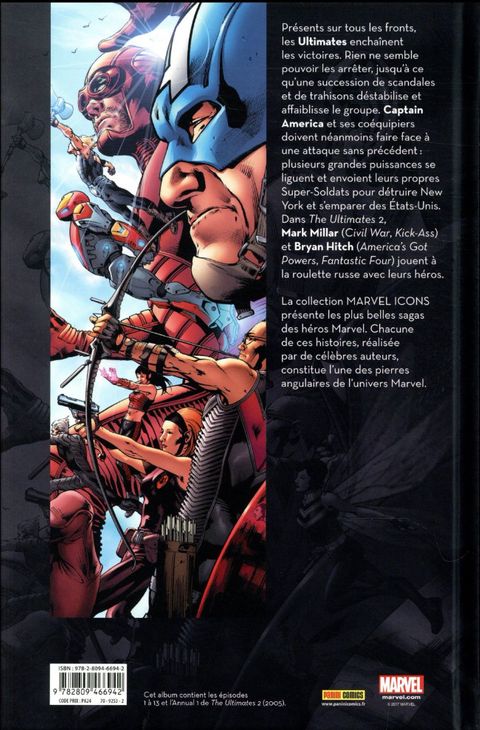 Le S.H.I.E.L.D. a créé les Ultimates, un groupe de super-héros chargé de défendre les États-Unis des attaques de surhommes. Mais l'un des membres est un traître qui s'est infiltré dans le groupe pour les détruire de l'intérieur. Contient les épisodes US The Ultimates 2 (2005) #1-13 et Annual (2005) #1.