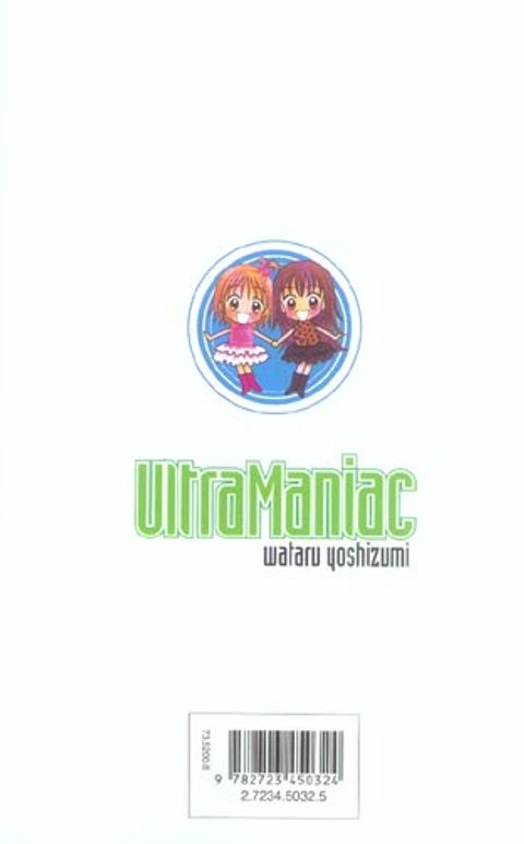 Et si votre meilleure amie était une magicienne ? C'est ce que va vivre Ayu, l'élève la plus « cool » de l'école Hideo, lorsqu'elle fera la rencontre de Nina, une apprentie magicienne venue étudier dans le monde des humains. Lorsque Nina découvre qu'Ayu est follement éprise de Kaji, l'idole de l'école, elle décide de tout mettre en uvre pour tenter de les rapprocher, notamment grâce à des sorts directement téléchargés sur le net avec son ordinateur portable ! Malheureusement pour Ayu, la magie de son amie ne semble pas encore très au point et leurs résultats sont assez folkloriques Ultra Maniac est une des toutes dernières séries en date de l'auteur de Marmalade Boy, débutée en 2002 et achevée en 2004. En 2003 , elle s'est vue adaptée en série télévisée. Pour sa première incursion dans le fantastique, Wataru Yoshizumi se montre très à l'aise et concocte une de ses comédies romantiques savoureuses dont elle a le secret !