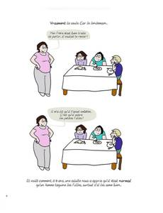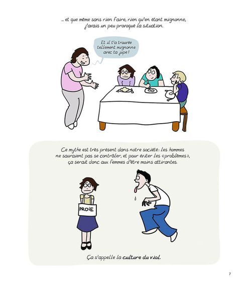 « Je lis plein de choses et je les regroupe par thèmes. Au bout d'un moment, j'ai le sentiment qu'un des thèmes mérite d'être porté au public. Je résume et ancre ce thème un peu théorique dans nos vies privées : ces expériences personnelles qui permettent de toucher chaque femme. C'est vraiment ça que j'ai vécu quand je me suis éveillée à la politique, qui a longtemps été pour moi un truc un peu chiant. J'ai trouvé dans des articles féministes des scènes que j'avais vécues. Il n'était pas possible que ce soit arrivé à plein de femmes, même à l'autre bout du monde, et qu'il n'y ait pas de lien ! J'ai ensuite lu des articles expliquant ce qui fait que des catégories de personnes vivent des choses similaires : il existe un système. Partir de ces événements que l'on vit seule, montrer qu'on les vit toutes, et faire apparaître l'importance du contexte : de cette façon, on peut agir sur le contexte pour changer son expérience personnelle. »