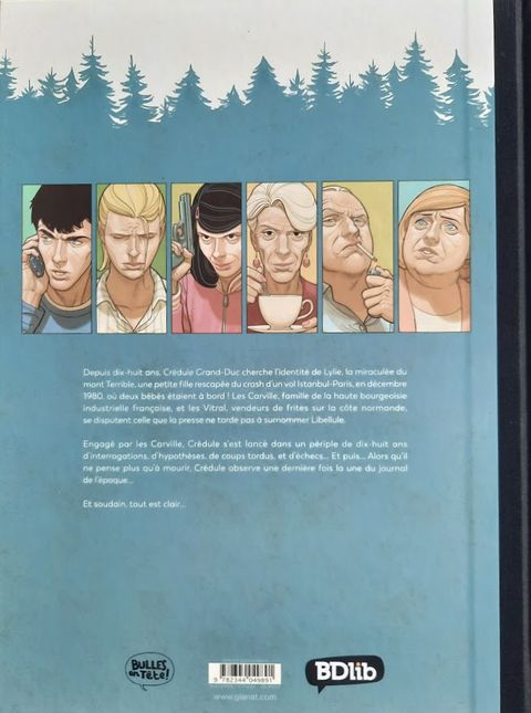 Le best-seller de Michel Bussi en bande dessinée ! Crédule Grand-Duc veut mourir. L'enquête de sa vie a échoué... Depuis 18 ans, il cherche l'identité de Lylie, la miraculée du Mont Terrible, une petite fille rescapée du crash du vol Istanbul-Paris survenu le 23 décembre 1980. Car deux bébés étaient à bord ! Les Carville et les Vitral, deux familles que tout oppose - Les Carville, issus de la haute bourgeoisie industrielle française et les Vitral, vendeurs de frites sur la côte normande - se disputent celle que la presse ne tarde pas à surnommer Libellule. La justice finit par confier l'éducation de Lylie aux modestes Vitral. Engagé par les Carville, le détective s'est lancé dans un périple de dix-huit ans d'interrogations, d'hypothèses, de coups tordus, et d'échecs... Et puis... Alors qu'il va presser la détente, Crédule observe une dernière fois la Une du journal de l'époque... Soudain, tout est clair... Drame familial, polar parfaitement huilé et quête d'identité, l'adaptation au cordeau du roman de Michel Bussi orchestrée par Fred Duval se voit sublimer par la patte graphique et la narration de Nicolaï Pinheiro. Véritable page-turner, ce récit dense aux personnages complexes et attachants promène le lecteur dans les mystères de l'enquête autant que dans les décors des quartiers parisiens, les chemins de grande randonnée du jura ou du front de mer dieppois. A la manière d'un subtil tour de magie, Un avion sans Elle, dévoile progressivement ses secrets pour mieux cacher le tour qu'il est en train de nous jouer.