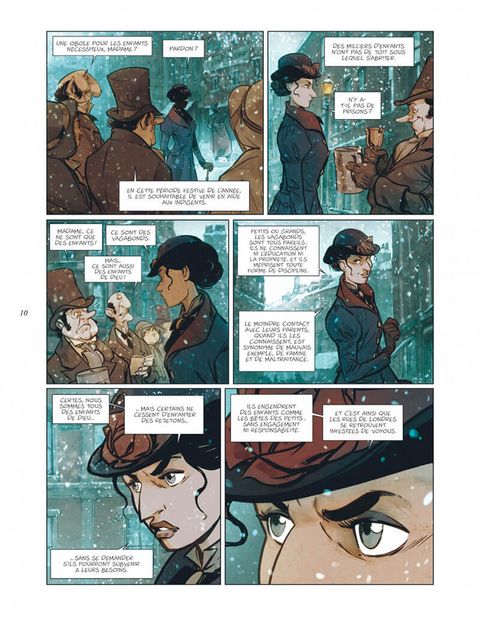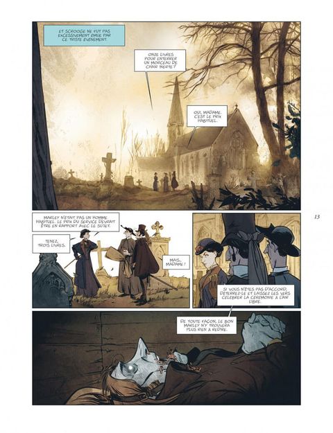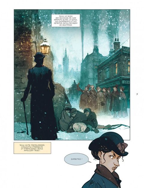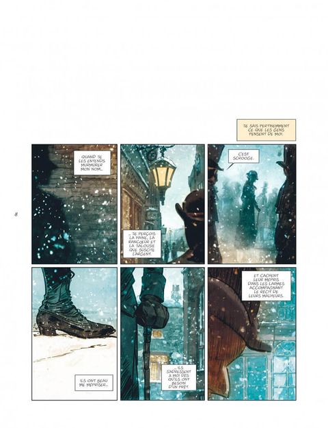 Londres, 1843. Tous les habitants, les mieux lotis comme les plus démunis, s'apprêtent à fêter Noël. Tous, à l'exception de Scrooge. Aux yeux de cette riche commerçante, insensible au malheur des autres comme à l'atmosphère de liesse qui baigne la cité, seuls le travail et l'argent ont de l'importance. On la dit radine, égoïste et mesquine. Elle préfère considérer qu'elle a l'esprit pratique. Et tandis que les festivités illuminent la ville et le coeur de ses habitants, Scrooge rumine sa misanthropie... Une nuit, des esprits viennent lui rendre visite. Ils l'emmènent avec eux, à la rencontre de la jeune fille qu'elle était, quelques années plus tôt, lorsque la cupidité n'avait pas encore rongé son coeur. Mais aussi à la découverte de celle qu'elle aurait pu devenir si elle avait choisi la voie de la bonté... Après le Bartleby d'Herman Melville, José Luis Munuera adapte librement un autre classique de la littérature anglo-saxonne : Un chant de Noël, de Charles Dickens. Munuera s'empare ainsi d'un des chefs-d'oeuvre de l'écrivain anglais, paru en 1843, et féminise le personnage de Scrooge. Une relecture délicieuse, à savourer pour les fêtes !