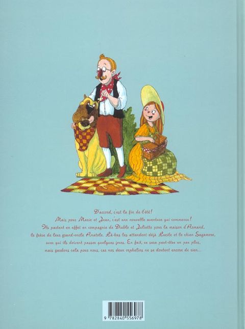 D'accord c'est la fin de l'été. Mais pour marie et jean, c'est une nouvelle aventure qui commence ! ils partent en effet en compagnie de diablo et juliette pour la maison d'arnaud, le frère de leur grand-oncle anatole. là-bas, les attendent déjà lucile et le chien sagamore, avec qui ils doivent passer quelques jours. en fait, ce sera un peu plus, mais gardons cela pour nous, car nos deux orphelins ne se doutent encore de rien.