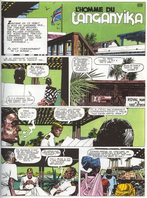 A noter que l'EO est de 10/1984 aux éditions Mon Journal avec une couverture reprenant le format de la série de Dargaud et sans ISBN pour être republiée par Christian Chalmin en 1986 avec une nouvelle couverture. Zanzibar, novembre 1914, le haut commandement de la marine britannique est extrêmement préoccupé par la présence du Königsberg, un croiseur de bataille allemand. Il faut le retrouver et le couler. Commence alors une partie de cache-cache dans le delta du Refugi. Les Anglais vont recevoir l'aide inattendue et décisive d'un pilote américain. Comme à son habitude, Micheluzzi développe une passionnante intrigue basée sur des éléments historiques solides.