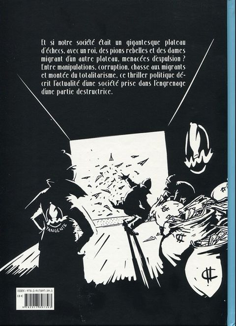 Une histoire vraiment originale des frères Gry! Ulysse au dessin et Gaspard au scénario! Tous les codes du jeu des échecs sont la et l'histoire reste credible et prenante! Évidemment c'est en noire et blanc😉