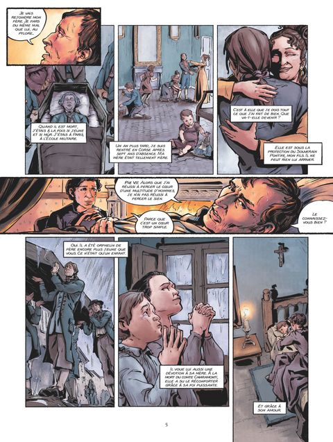 Le Pape face à l'Empereur. Né en 1742, Pie VII est d'abord connu sous le nom de frère Grégoire. Il commence sa carrière ecclésiastique en tant que simple moine bénédictin, grimpe les échelons à force d'érudition et d'exemplarité et finit par être intronisé en 1800 à la suite d'un long et délicat conclave organisé à Venise. Il prend le nom de Pie VII en l'honneur du pontificat de son prédécesseur et protecteur Pie VI. Pie VII est le pape qui aura couronné Napoléon Empereur en 1804. Pourtant, à partir de cet événement, la relation entre les deux hommes se désagrège... Napoléon refusera toujours de se soumettre à l'Eglise et Pie VII n'acceptera jamais de céder aux demandes excessives de l'Ogre Corse. Il ira même jusqu'à l'excommunier. L'obstination du Pape à son encontre fait enrager l'Empereur qui l'emprisonne à partir de 1809. Ce n'est qu'en 1814 qu'il est libéré, un an avant la défaite de Waterloo et l'exil forcé de Napoléon vers l'île de Sainte-Hélène. Relatant la vie d'un pontife irréprochable par le biais de sa relation avec l'un des plus grands personnages de l'histoire, ce nouvel opus de la collection "Un pape dans l'histoire" permet de mettre en lumière la vie d'un combattant émérite et pacifique de l'Eglise. Un album qui rend également hommage au bicentenaire de la mort de Napoléon.
