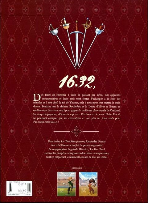 Un récit qui offre un préambule dynamique aux Trois Mousquetaires de Dumas et met les jeunes lecteurs sur le chemin d'un grand classique. Rochefort, l'âme damnée de Richelieu, pousse certains de la Cour des miracles à s'en prendre au maître d'armes. Les jeunes Savinien Cyrano et Blaise Pascal parviennent à s'enfuir et rejoignent le reste des apprentis mousquetaires à Lyon. Après une discussion à bâtons rompus, la petite troupe, accompagnée de Charlotte, la fille de Milady, décide d'affronter le danger et rentre à Paris...