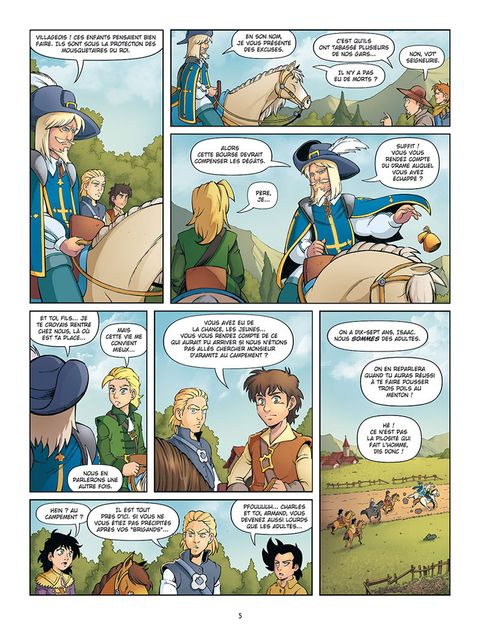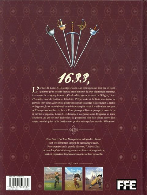 Henri d'Aramitz, Isaac de Porthau et la jeune Charlotte sont contraints de fuir après leur algarade ratée dans le dernier village qu'ils ont traversé. Ils ne doivent leur sauvetage qu'à l'intervention du mousquetaire et père d'Henri. Ils comptaient pourtant bien faire : déjouer un complot fomenté contre Montalet et Tréville. Mais on ne prend pas les enfants au sérieux. Vont-ils s'en laisser conter ?