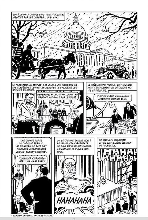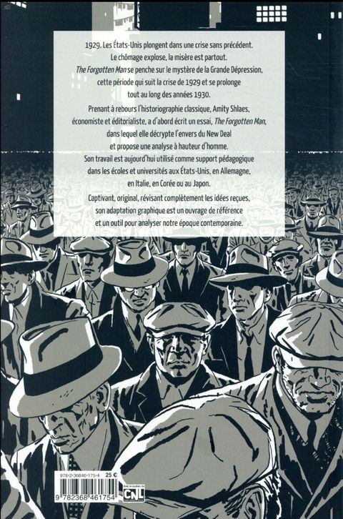 1929. Les États-Unis plongent dans une crise sans précédent. Le chômage explose, la misère est partout.The Forgotten Man se penche sur le mystère de la Grande Dépression, cette période qui suit la crise de 1929 et se prolonge tout au long des années 1930. Prenant à rebours l’historiographie classique, Amity Shlaes, économiste et éditorialiste, a d’abord écrit un essai, The Forgotten Man, dans lequel elle décrypte l’envers du New Deal et propose une analyse à hauteur d’homme. Son travail est aujourd’hui utilisé comme support pédagogique dans les écoles et universités aux États-Unis, en Allemagne, en Italie, en Corée ou au Japon.Captivant, original, révisant complètement les idées reçues, son adaptation graphique est un ouvrage de référence et un outil pour analyser notre époque contemporaine.