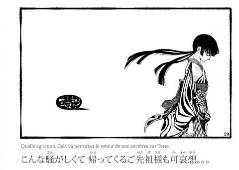 Eté 2041, Tokyo. 20 ans après la pandémie. Ullambana, des festivités où les vivants célèbrent les morts et ou les morts célèbrent les vivants, pour avancer et profiter de la vie. Les sons bruissent ou les tambours cognent, les paroles deviennent des objets précieux. Des visages, des corps, des absences. Un dessin au trait, ciselé. Les images de Mlle Nagata nous prennent la main doucement, pour nous faire entrer dans la danse.