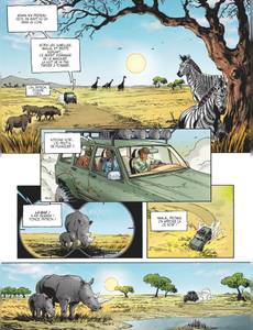 Une fable contemporaine sur la préservation des espèces menacéesAlors que la sixième extinction massive des animaux sauvages a commencé, une course contre la montre est engagée pour sauver les derniers rhinocéros noirs de la planète... Hélas, le programme de conservation auquel participe le parc zoologique des Coteaux est gravement remis en question suite à la mort de plusieurs rhinocéros abattus dans une réserve africaine. Une équipe de défenseurs de la nature mènent une opération de la dernière chance pour sauver l'espèce... mais n'est-il pas déjà trop tard ?Entre 1960 et 1995, le braconnage à grande échelle des populations de rhinocéros (blancs et noirs) a provoqué une chute spectaculaire de la population de 98%. A la fin du XXe siècle, on comptait seulement 2 300 individus. Le déclin se poursuit depuis dans la plupart des pays, où le rhinocéros est encore présent. En 2015, 1 342 rhinocéros (blancs et noirs confondus) ont été braconnés sur le continent africain, soit près de quatre individus massacrés par jour. Avec cette fable contemporaine, Pierre-Roland Saint-Dizier et Andrea Mutti nous alertent sur le risque d'extinction définitive de cet animal et, par extension, nous sensibilisent sur la préservation des espèces menacées.