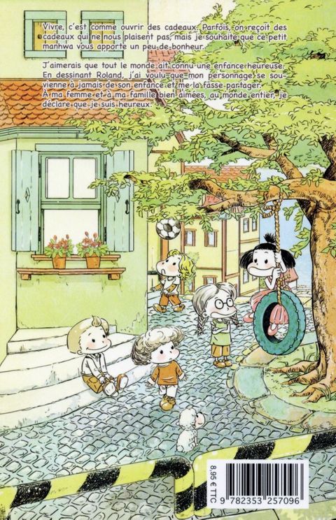 Vivre, c'est comme ouvrir des cadeaux. Parfois, on reçoit des cadeaux qui ne nous plaisent pas, mais je souhaite que ce petit manhwa vous apporte un peu de bonheur. J'aimerais que tout le monde ait connu une enfance heureuse. En dessinant Roland, j'ai voulu que mon personnage se souvienne à jamais de son enfance et me la fasse partager. À ma femme et à ma famille bien aimées, au monde entier, je déclare que je suis heureux.