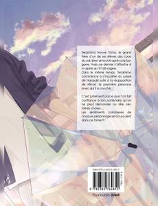 Terashima trouve Tôma, le grand frère d'un de ses élèves des cours du soir, bien amoché après une bagarre, mais ce dernier s'attache à lui après qu'il l'ait soigné.Dans le même temps, Terashima commence à s'inquiéter du passé de Narasaki suite à la réapparition de Minori, la première personne avec qui il a couché...C'est justement parce que l'on fait confiance à son partenaire qu'on ne peut demander ou dire certaines choses...Les sentiments complexes de chaque personnage se bousculent dans ce tome 9 !
