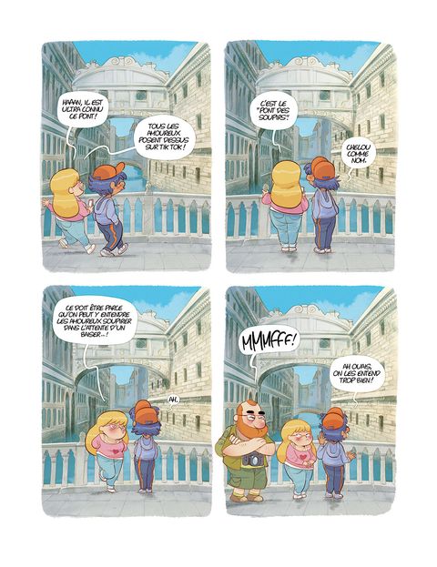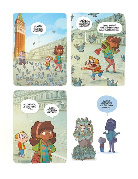 Cette fois c'est à Venise que la famille Bourlingue a décidé de passer une journée inoubliable : visiter le Palais des Doges et voyager sur le Grand Canal à bord d'un vaporetto. Mais la famille est accompagnée du petit copain de Julie, au grand agacement du père... Entre anecdotes historiques et visites des lieux iconiques, ils découvrent les trésors de la ville avec un point de vue plein de malice et de d'humour.