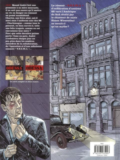 1946, au coeur des Ardennes. Une femme atteinte d’une maladie incurable, Marie-Louise Marchandise demande à deux de ses fils, André et René, de retrouver l’aîné de la fratrie, Charles, disparu dans la tourmente de la guerre. Une demande pressante, mais source de vives tensions : l’engagement de Charles dans la L.V.F., une organisation alliée des nazis, n’a pas laissé de bons souvenirs à André, qui lui a combattu dans la Résistance. Pourtant, par dévouement pour sa mère, il accepte de partir en quête de Charles. Au fil de ses recherches dans une Europe dévastée, André va découvrir l’existence d’O.D.E.SS.A., le réseau qui organise la fuite des criminels de guerre nazis vers l’Amérique du Sud…