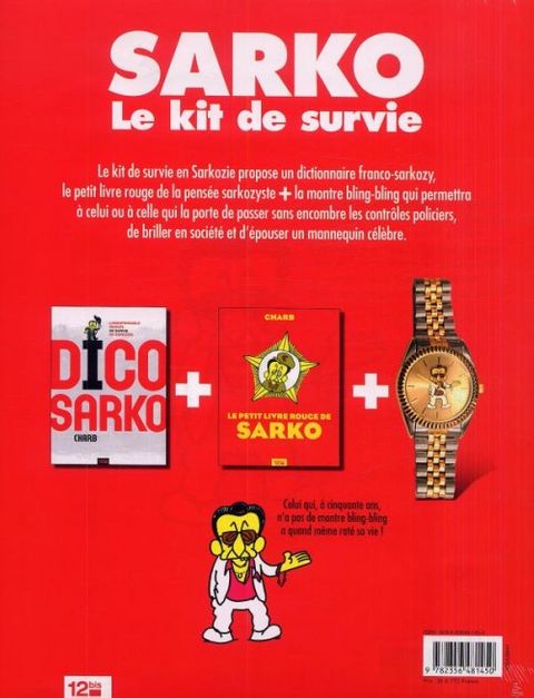 Afin de « fêter » le troisième anniversaire de l'arrivée de Nicolas Sarkozy à l'Elysée, Charb propose un magnifique coffret regroupant deux de ses meilleurs albums, Le Dico Sarko et Le petit livre rouge de Sarkozy, et nous offre en prime, une magnifique « fausse Rolex » à l'effigie de notre bon président. Si vous connaissez quelqu'un qui va bientôt avoir 50 ans c'est le moment ou jamais de lui offrir ce cadeau avant qu'il n'ait définitivement raté sa vie.