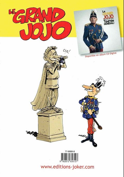 Véritable OVNI dans le ciel musical belge depuis plus de quarante ans, le "Grand Jojo" revient sur le devant de la scène, plus délirant que jamais. Chantre de la bonne humeur, ménestrel des fêtes populaires, fournisseur attitré des diables rouges, 11 nouvelles chansons sont récemment venues s'ajouter à un catalogue déjà conséquent et haut en couleur. Avec parfois, une pincée d'émotion en plus. Inscrit au livre d'or du patrimoine folklorique, style musical à lui tout seul, ce grand adolescent presque octogénaire était le client idéal pour devenir le héros d'une bande dessinée d'humour. C'est aujourd'hui chose faite par une succession de gags revisitant, par l'image, les points culminants de son répertoire.