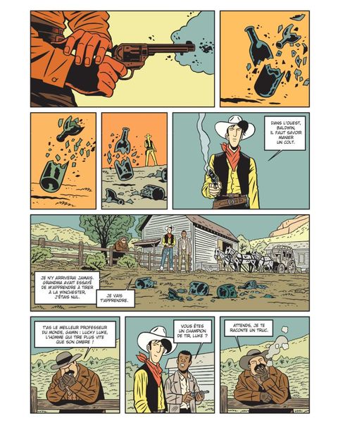 J'étais quelque peu sceptique sur cet album, ne serait-ce que dans le graphisme du personnage, avec le trait si particulier de Brüno. Et je n'ai pas été déçu, en quoi que ce soit. Le dessin assez dur sied très bien à Lucky Luke, à sa personnalité et à son évolution. (...) Voir le commentaire