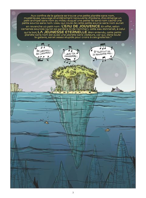Il y a bien longtemps, dans une lointaine galaxie...Après un sidérant voyage intersidéral, l'équipage du Kouklamoon se retrouve sur une petite planète sans nom, mystérieuse, sauvage et entièrement recouverte d'océans, d'où émerge un petit archipel sans nom au milieu duquel une petite île sans nom cache une petite source sans nom. L'eau qui coule de cette petite source sans nom aurait en revanche un petit nom : l'eau de jouvence. En effet, selon certaines sources (qu'on se gardera ici de nommer), cette eau donnerait, à celui qui la boit, la jeunesse éternelle ! Bien entendu, cette petite planète sans nom est aussi une planète sans visiteurs, car qui, dans toute la galaxie, serait assez stupide pour croire à ces gnoleries ?Les pirates fétiches de Nicolas Pothier et Frédérik Salsedo partent pour une nouvelle aventure hilarante... aux confins de la galaxie ! Pour l'occasion, c'est Frédérik Salsedo, le dessinateur originel de la série régulière Ratafia (désormais dessinée par Johan Pilet), qui reprend les commandes de ce spin-off. Ratafia Delirium, ou quand l'humour d'Astérix rencontre le monde sans limite de Star Wars !