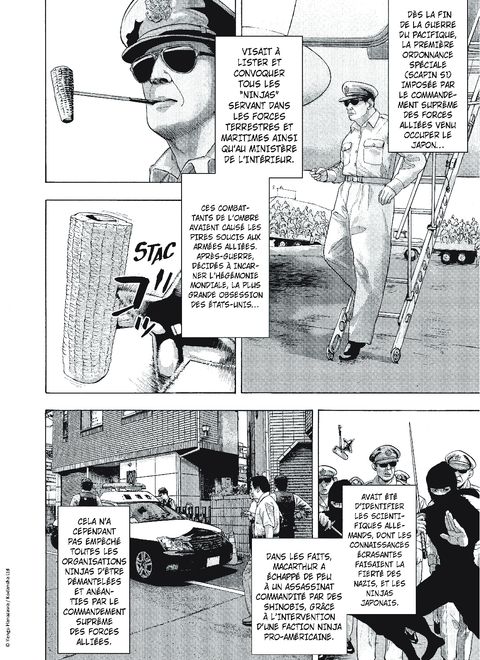 <div style="text-align: justify;">Même après des siècles, les ninjas sont parmi nous.Jouissant autrefois d'un grand prestige, ces combattants émérites avaient disparu après-guerre, leur organisation prétendument démantelée par les Forces Alliées. En réalité, il n’en est rien.Aujourd'hui, ces maîtres en infiltration, espionnage ou assassinat compteraient près de 200 000 membres : une partie représente une élite prenant part aux conflits à grande échelle, tandis que l’autre peine à se maintenir en activité. C’est le cas de Kurô Kumogakure, jeune shinobi aussi redoutable que désœuvré… Son quotidien de faux oisif bascule le jour où on lui confie enfin une mission : stopper un tueur d’origine russe, prêt à tous les massacres pour infiltrer l’organisation des ninjas.</div>