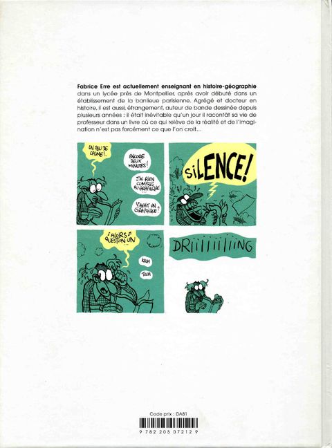 Un témoignage hilarant sur le quotidien d'un professeur d'histoire-géo ! Il faut dire que le lycéen est un être particulier : tantôt agité, dissipé, provocateur, studieux, complexé, blasé, dragueur, sérieux, paumé, suiveur, décidé, amusant ou amusé. Bref, c'est d'abord un adolescent, souvent déroutant, qui tente de se frayer un chemin vers le Graal : le bac ! Fabrice Erre a recensé les nombreuses anecdotes qui lui sont arrivées pour en faire une suite de gags décapants.