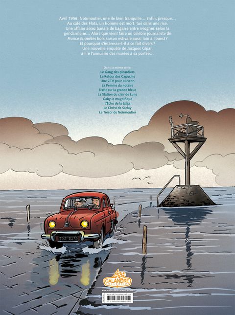 Noirmoutier, une île bien tranquille. Au bout de ce coin de Vendée plutôt aéré, Le Café des Flots accueille une clientèle en mal de grand air. Que vient faire Jacques Gipar hors saison estivale aussi loin à l'ouest ? Est-il sur les traces de contrebandiers ? Sur la piste de criminels cachés en province ? Ou a-t-il l'espoir de mettre la main sur un trésor perdu ? Une nouvelle enquête de Jacques Gipar, à lire l'annuaire des marées à sa portée...