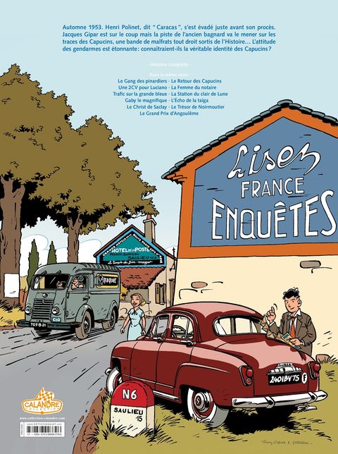 Automne 1953. Henri Polinet, dit « Caracas », s'est évadé juste avant son procès. Jacques Gipar est sur le coup mais la piste de l'ancien bagnard va le mener sur les traces des Capucins, une bande de malfrats tout droit sortis de l'Histoire... L'attitude des gendarmes est étonnante : connaîtraient-ils la véritable identité des Capucins ?