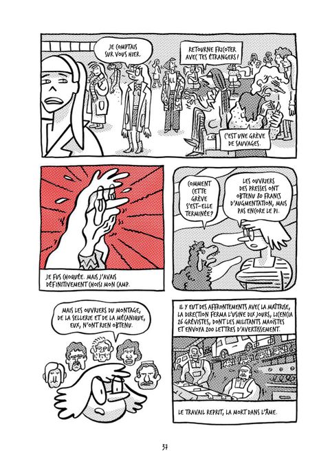 Comme d'autres "établis" - démarche amorcée à la suite de mai 1968 et visant à faire entrer des militants révolutionnaires dans les usines - Fabienne Lauret se fait embaucher aux usines Renault-Flins, dans les Yvelines, le 3 mai 1972.Son engagement pour la cause ouvrière, à l'instar de nombreux établis, deviendra très vite la trajectoire de toute une vie. Elle passera ainsi plus de trente-six ans à l'atelier de couture et au comité d’entreprise de l’usine.Dans cette BD coscénarisée par Philippe Guillaume, Fabienne Lauret retrace une vie de luttes syndicales et féministes, de l’obtention du samedi comme jour de congé au droit à des conditions de travail et salaires décents. Véritable journal d’usine des années 1970 à 1990, ce témoignage raconte la condition ouvrière et les discriminations sexistes qui révoltaient Fabienne, sans oublier le racisme omniprésent envers les nombreux immigrés qui occupaient les postes les plus pénibles.Un témoignage tout à la fois personnel, intime, sociologique et historique, à l'heure où la menace d'une fermeture plane sur Renault Flins...<em>Préface de l'historienne Ludivine Bantigny.</em>