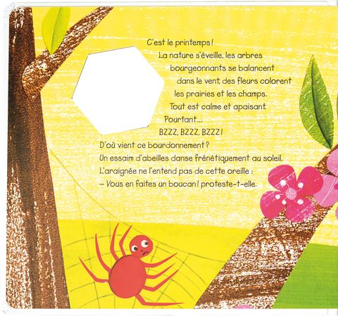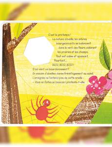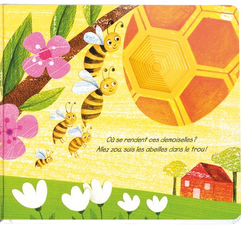 Un 6e cartonné à trous dans la lignée de Sur la Grosse PommeUn essaim d’abeilles bourdonne dans la prairie. Les entends-tu ? Que font-elles ?Suis-les et découvre, avec le hibou ou l’araignée, comment ces travailleuses construisent leur nouveau foyer.Un beau cartonné à trous, ludique, pour explorer le monde des abeilles !
