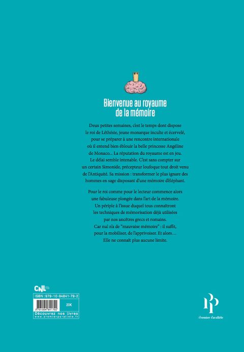 Il était une fois, au royaume de Léthésie, un jeune monarque écervelé dont la mémoire était si déplorable qu'il ne se souvenait de rien, ne savait rien nommer, ne comprenait rien au monde qui l'entourait. Les journées passaient ainsi, entre deux parties de petit train, sous l'oeil consterné de ses conseillers. Or voici qu'un beau jour, le roitelet doit se rendre au bal de la Rose, à Monaco. Fera-t-il bonne figure devant la diplomatie étrangère ? Une seule solution : faire appel à un certain Simonide, personnage loufoque dont on dit qu'il est capable, en quelques jours, de transformer le plus inculte des hommes en sage disposant d'une mémoire d'éléphant. Il suffit pour cela, dit-on, de plonger dans son imagination... Pour le roi comme pour le lecteur commence alors un fabuleux périple dans les arcanes de la mémoire. À la fin de ce voyage initiatique, tous connaîtront les techniques de mémorisation infaillibles. N'ont-elles pas déjà fait leurs preuves chez nos ancêtres grecs et romains ? Cicéron lui-même les utilisait...