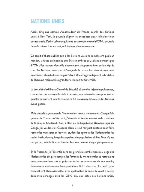 Le témoignage de l'auteur, qui a passé quatre ans au sein de l'ONU en tant que correspondant de presse. Il relate son fonctionnement et ses difficultés comme ses défaillances, l'impuissance du Conseil de sécurité ou l'apparition d'une nouvelle guerre froide avec la Russie. Des chroniques décalées non dénuées d'humour.